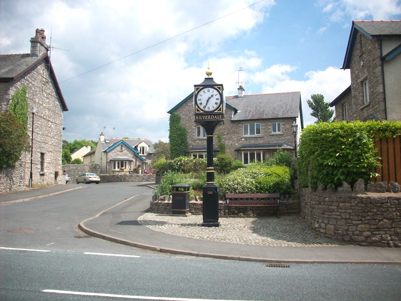 Silverdale. This scene is in Stoneliegh Court looking torwards the Millennium Clock which seems older then it looks but is dated 2000AD.
