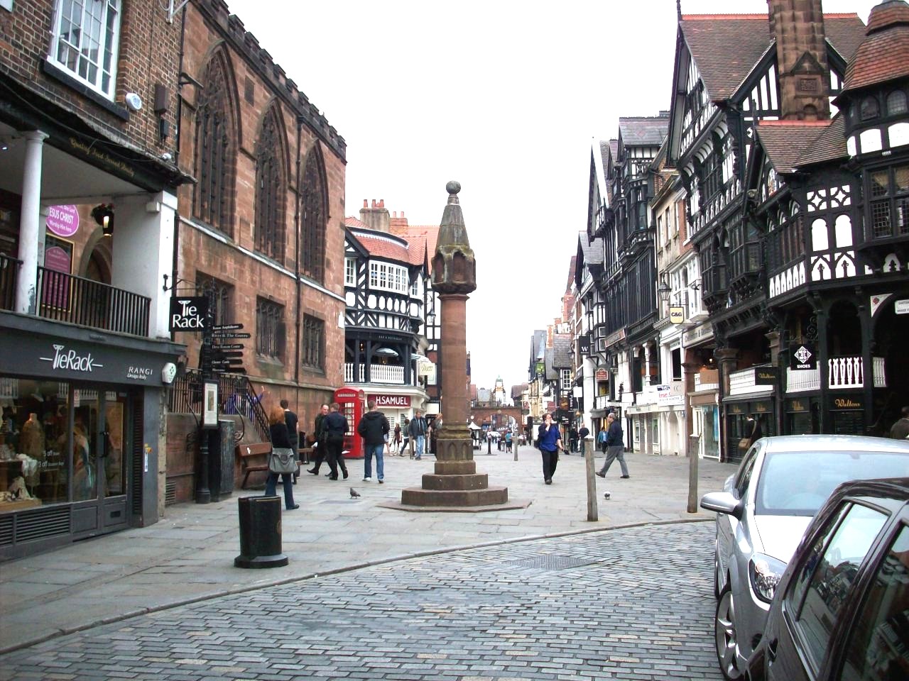 The Border and Walled City of Chester. This scene is in the main centre looking towards The Cross into Eastgate Street.