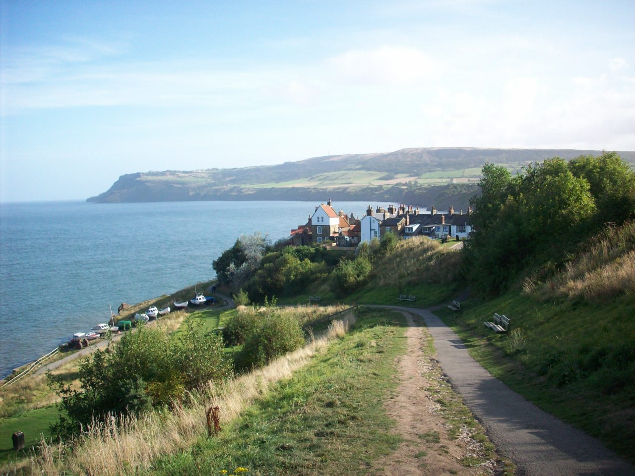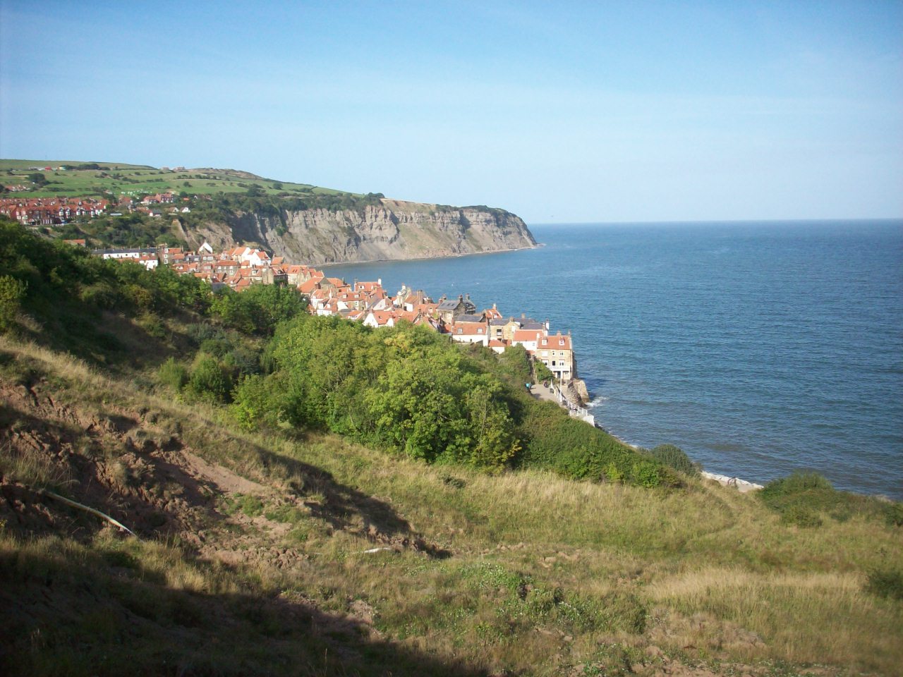 Ravenscar. Situated at the southern end of Robin Hoods Bay and is sited on some of the highest cliffs of this coastline that are about 600 feet high.
